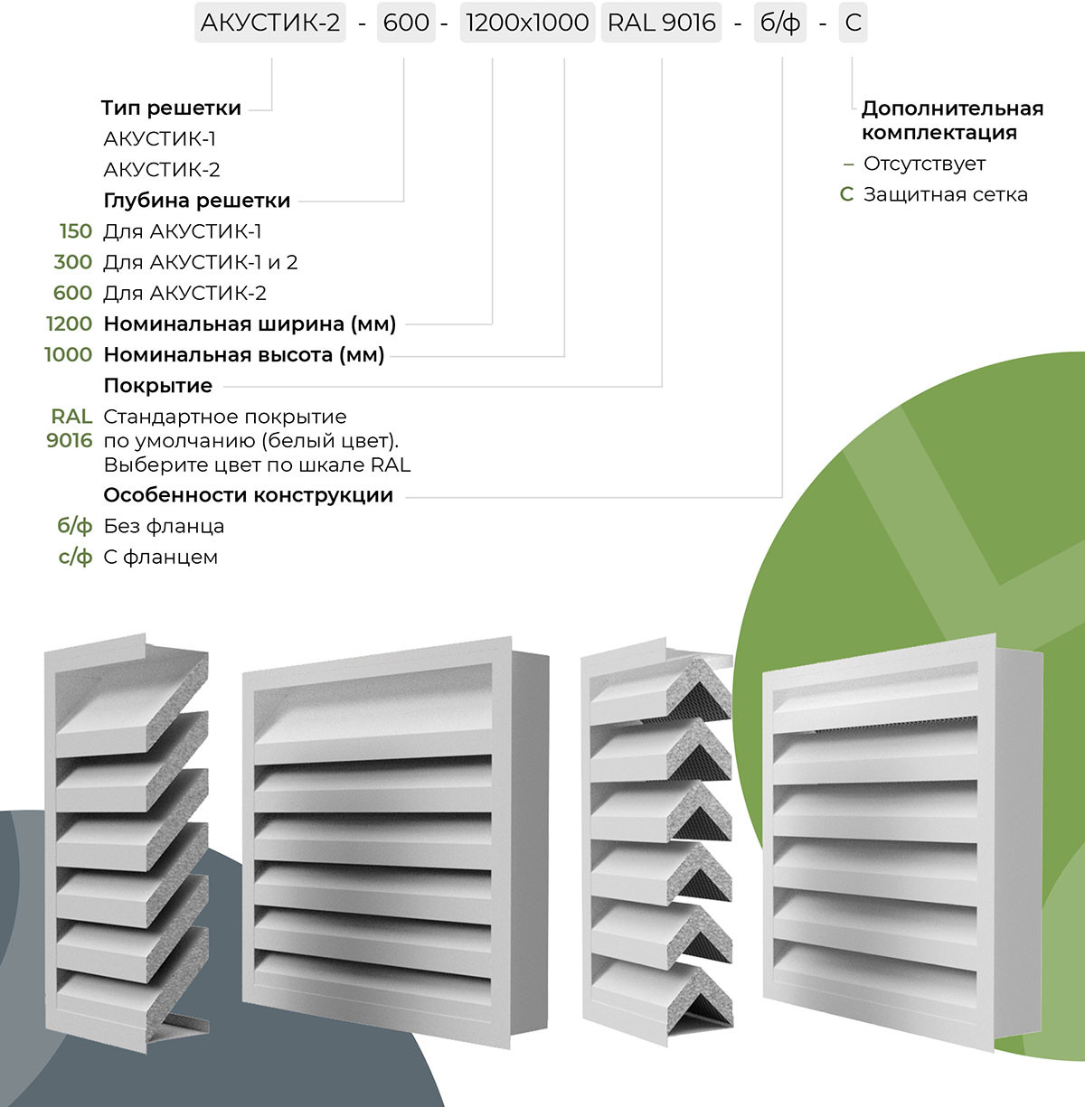 По дополнительному запросу  решетка Акустик может быть снабжена стальной сеткой от птиц и крупных насекомых, а также возможна комплектация рамой из алюминиевого уголка 50х50 мм для крепления в строительные проемы.